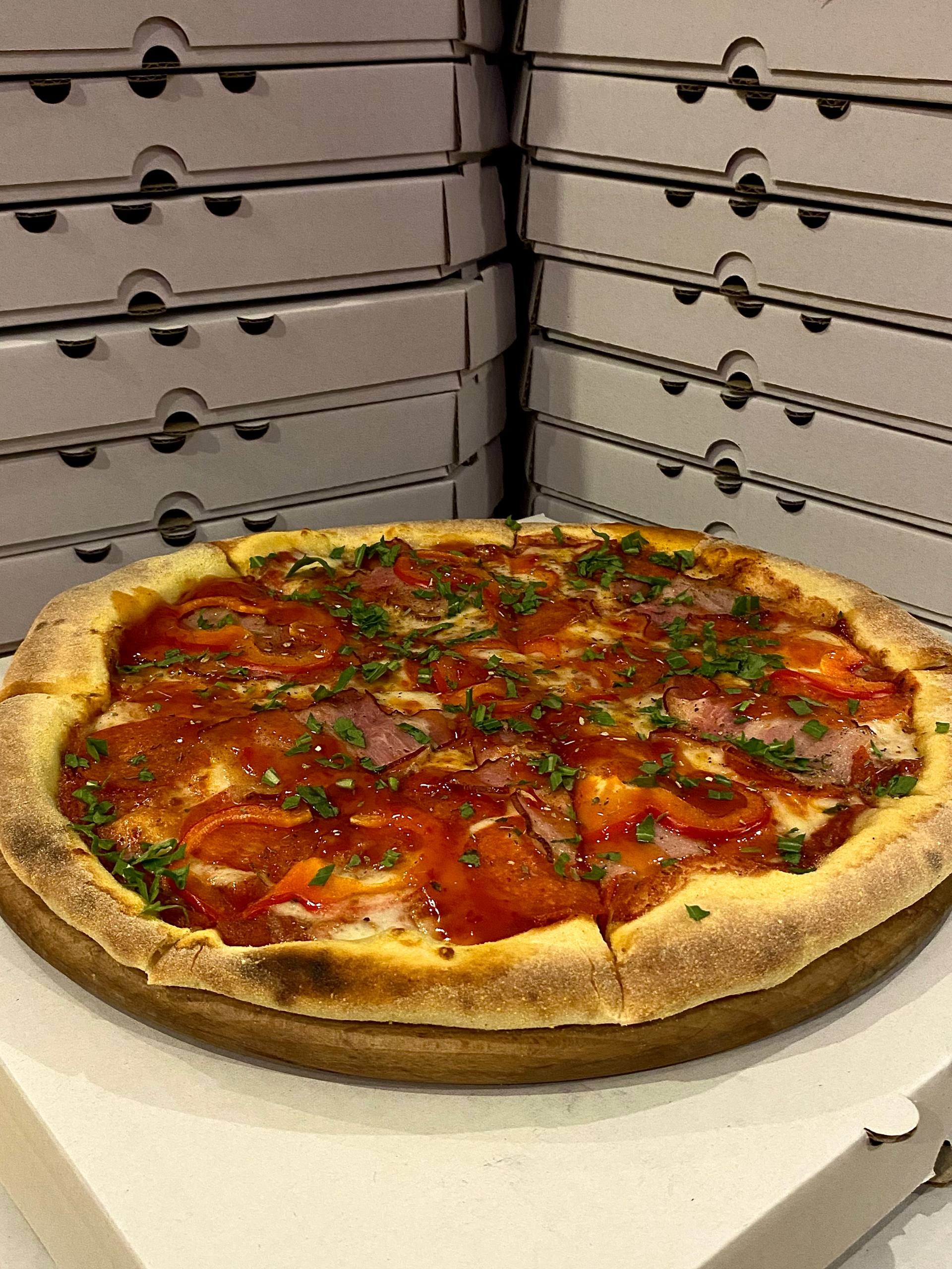 (помідор, огірки, болгарський перець, фета, маслини, червона цибуля, мікс салату, соєво-гірчичний соус на оливковій олії)